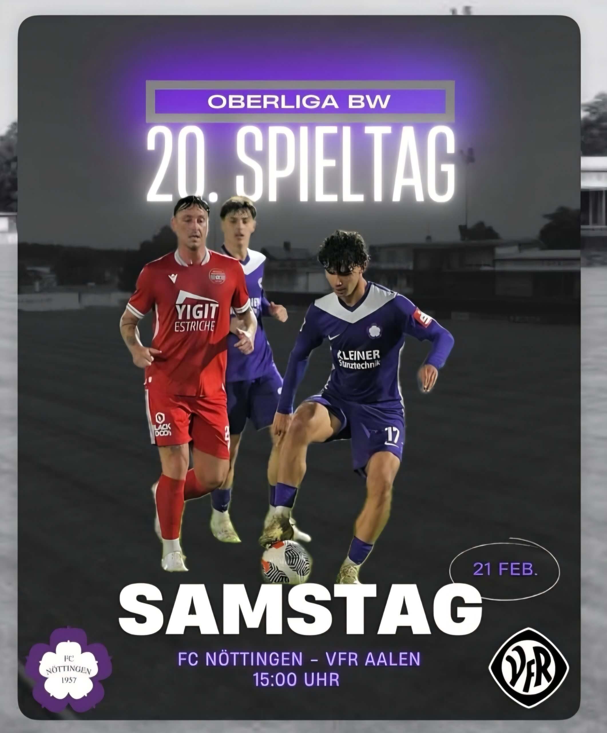 Wegen der anhaltenden Regenfälle, ist der Platz in der KLEINER-Arena leider unbespielbar. Das für heute (15:00 Uhr) angesetzte Spiel gegen den VfR Aalen wurde deshalb abgesagt. Sobald ein Nachholtermin feststeht, werden wir euch darüber informieren.
